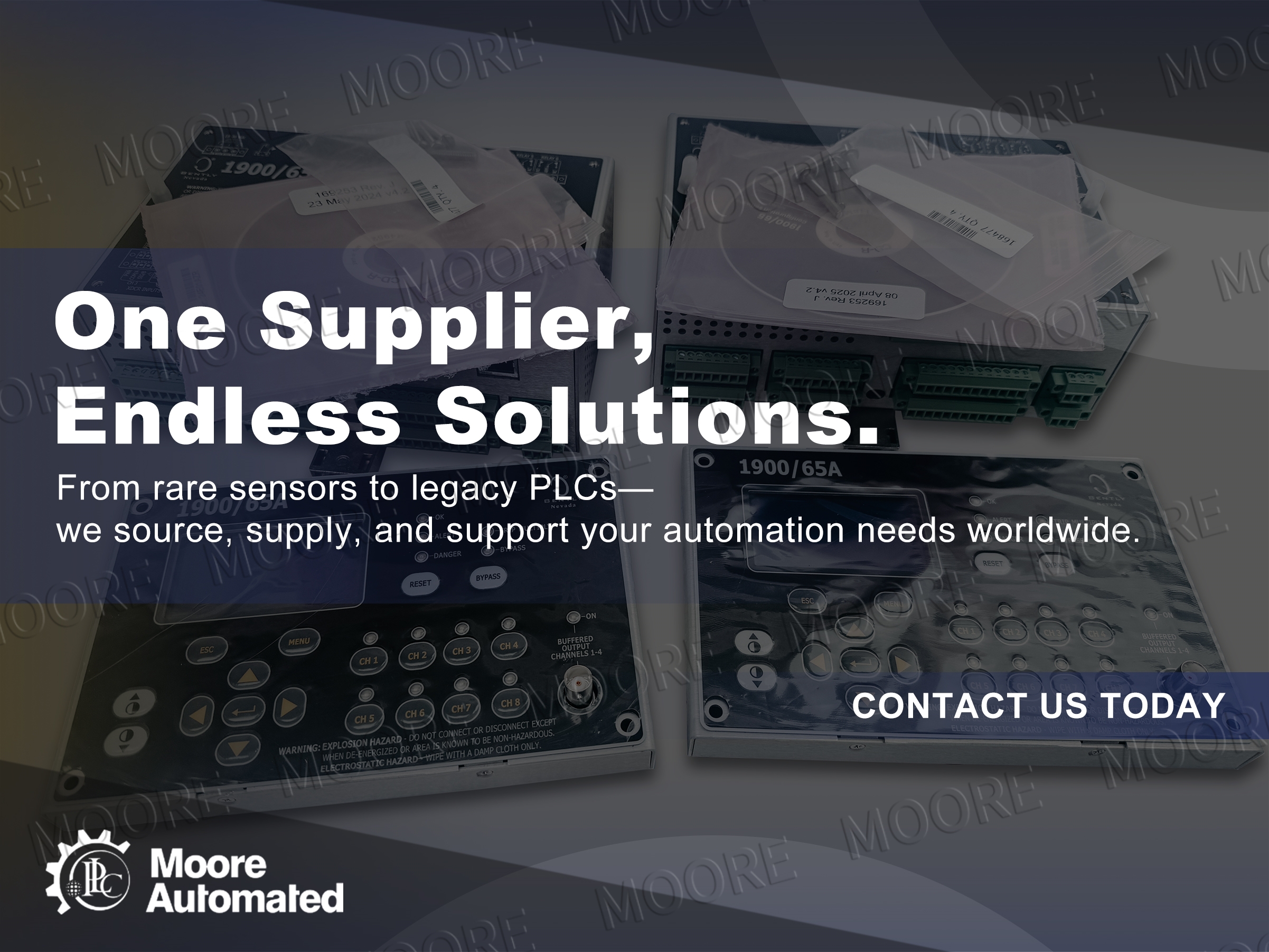 Moore Automation Limited sells new and surplus products and develops channels for purchasing such products. This website has not been approved or recognized by any of the listed manufacturers or trademarks.Moore Automation Limited is not an authorized distributor, dealer, or representative of the products displayed on this website.All product names, trademarks, brands, and logos used on this website are the property of their respective owners. The description, explanation, or sale of products with these names, trademarks, brands, and logos is for identification purposes only and is not intended to indicate any association with or authorization from any rights holder.